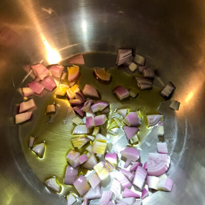 In una pentola fai imbiondire la cipolla o lo scalogno, con sale (salsa di soia) e olio evo. Per sprigionare ancora di più l'aroma puoi mettere ora anche le erbe aromatiche (io le avevo dimenticate e le ho messo dopo)